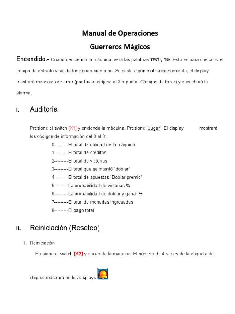 Presione el switch [K1] y encienda la mquina. Presione Jugar. El display mostrar