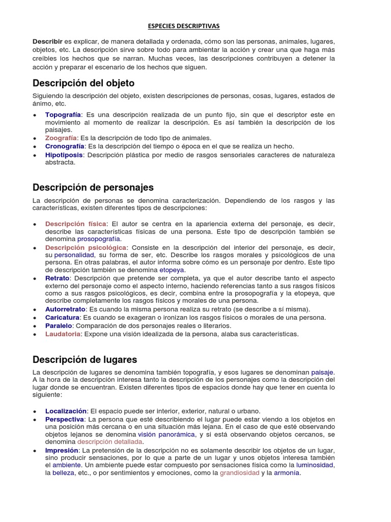 La descripcin de personas se denomina caracterizacin. Dependiendo de los rasgos y las