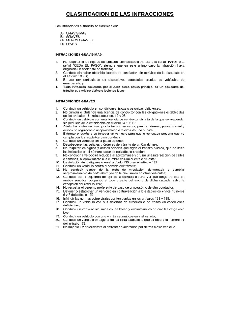 Las infracciones al transito se clasifican en: