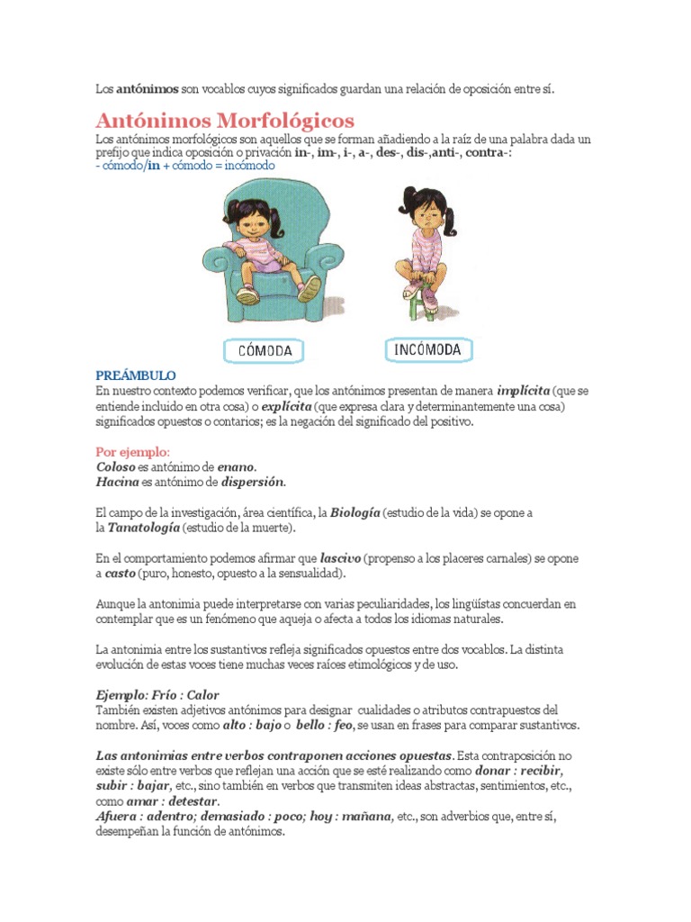 Los antnimos morfolgicos son aquellos que se forman aadiendo a la raz de una palabra dada un