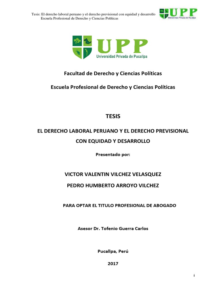 Tesis: El derecho laboral peruano y el derecho previsional con equidad y desarrollo