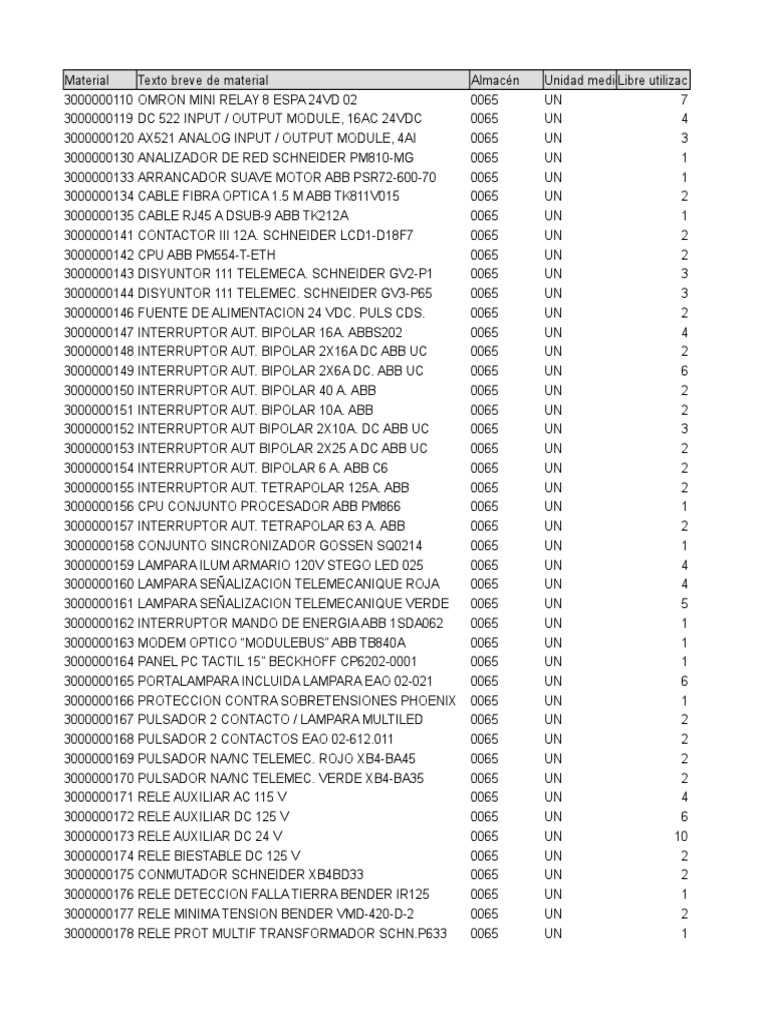 3000000254 RELEVADORES AUXILIARES 0065 UN 1