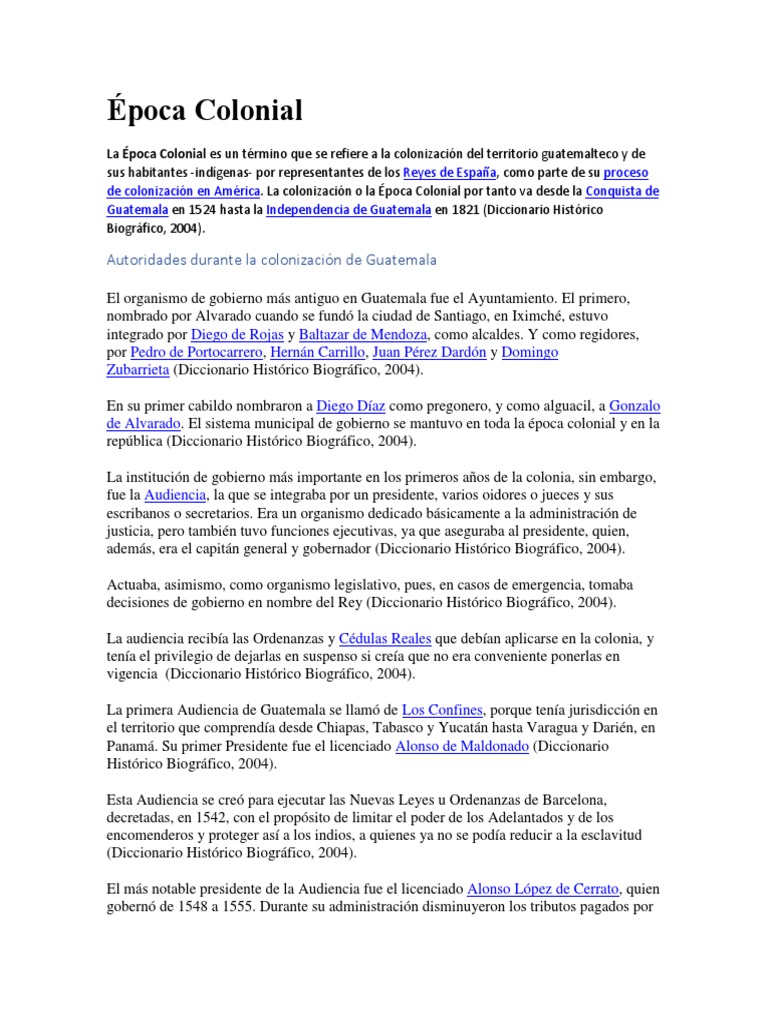 La poca Colonial es un trmino que se refiere a la colonizacin del territorio guatemalteco y de