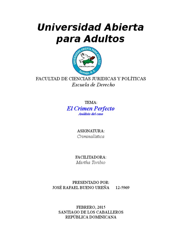 Derecho y la Criminalstica entran en accin. De igual manera poder ver cules
