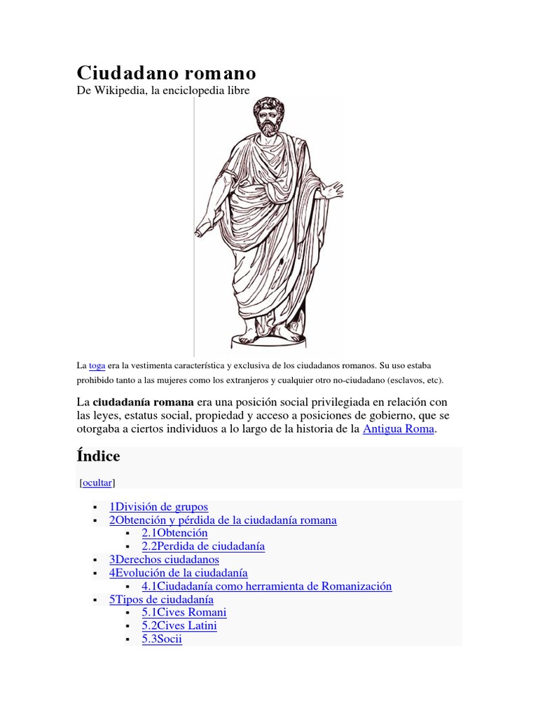 La toga era la vestimenta caracterstica y exclusiva de los ciudadanos romanos. Su uso estaba