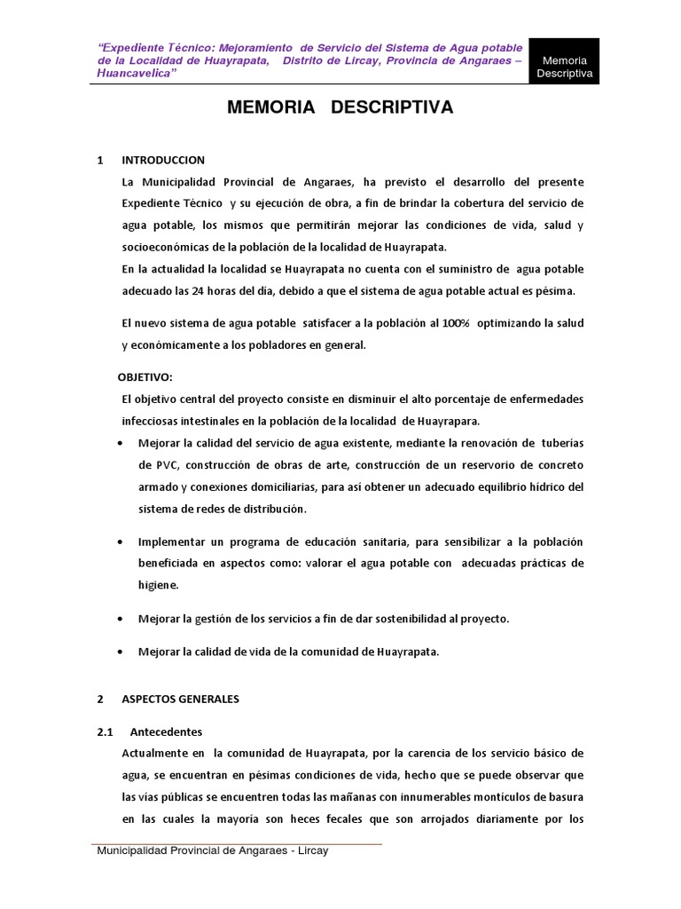 Expediente Tcnico: Mejoramiento de Servicio del Sistema de Agua potable