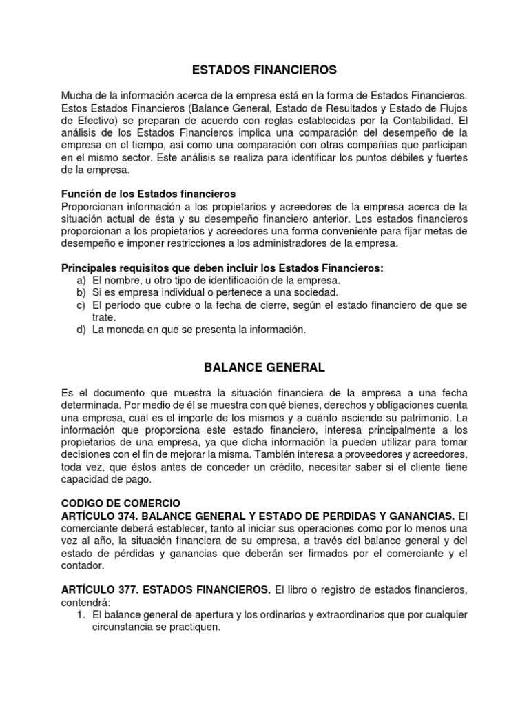 ARTCULO 377. ESTADOS FINANCIEROS. El libro o registro de estados financieros,