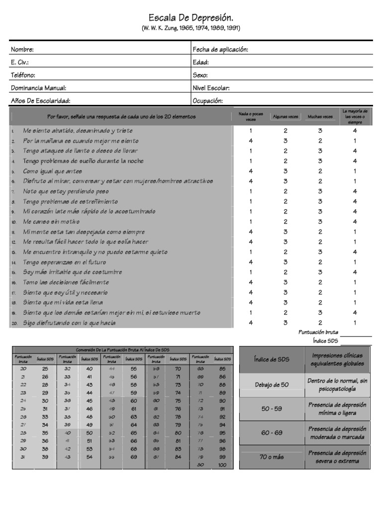 (W. W. K. Zung, 1965, 1974, 1989, 1991)