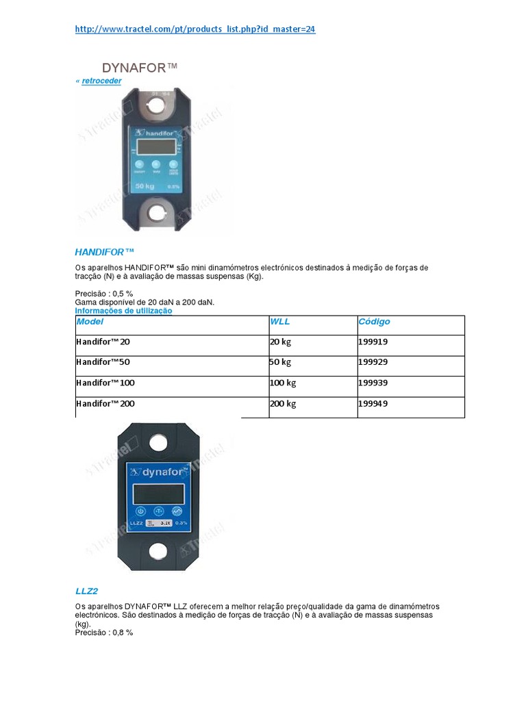 Os aparelhos DYNAFOR LLX1 so dinammetros electrnicos destinados medio de foras de