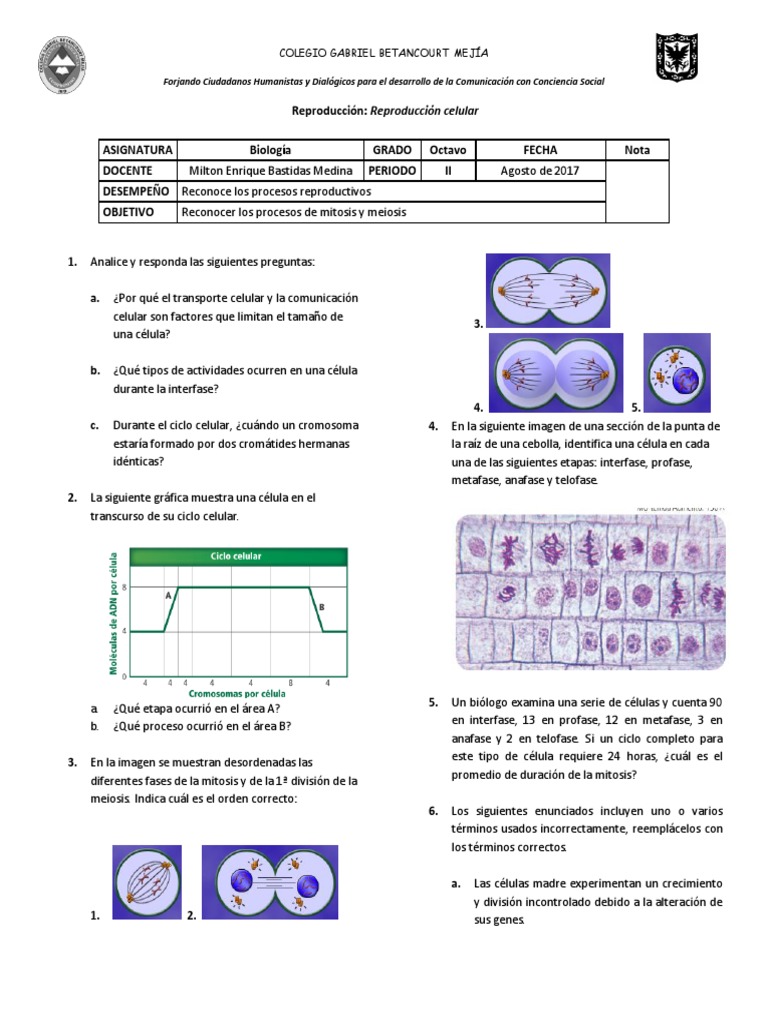 ASIGNATURA Biologa GRADO Octavo FECHA Nota