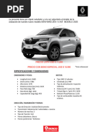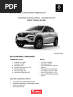 Pesos en orden de marcha (Kg.) 1,042 Los detalles y especicaciones descritos son preliminares y estn sujetos a cambios sin previo aviso y pueden variar en cualquier momento. Consulte a su concesionario DercoCenter Renault ms cercano o de su regin para