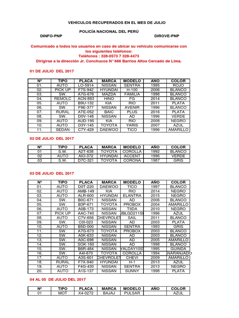 Comunicado a todos los usuarios en caso de ubicar su vehculo comunicarse con