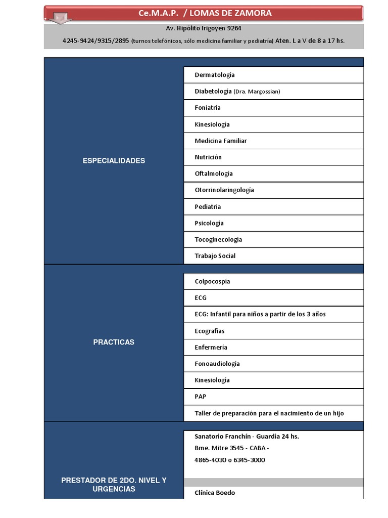 4245-9424/9315/2895 (turnos telefnicos, slo medicina familiar y pediatra) Aten. L a V de 8 a 17 hs.