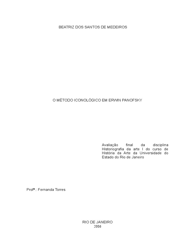 caractersticas do mtodo iconolgico usado pelo autor do texto. Neste texto,
