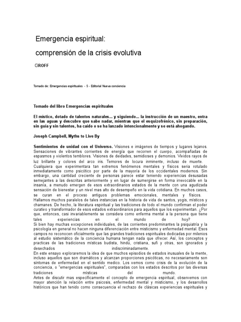 emergencias espirituales y tratarlas adecuadamente por su gran potencial positivo para el