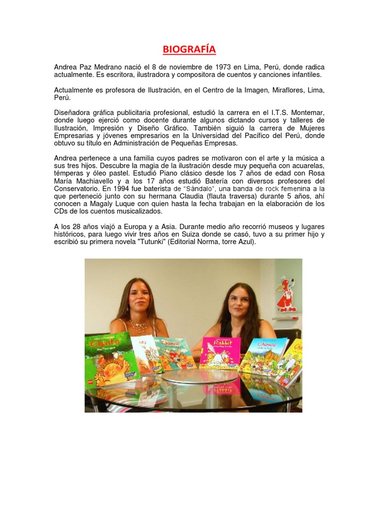 Andrea Paz Medrano naci el 8 de noviembre de 1973 en Lima, Per, donde radica