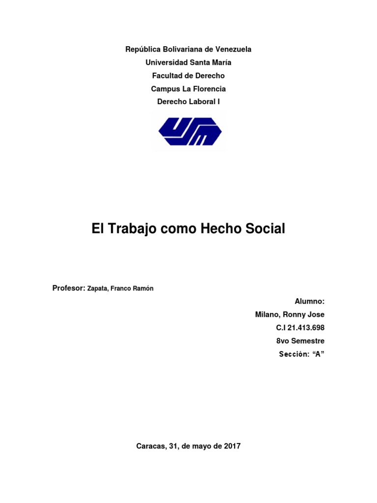 El trabajo como un hecho social se concibe como un proceso o relacin social de produccin que