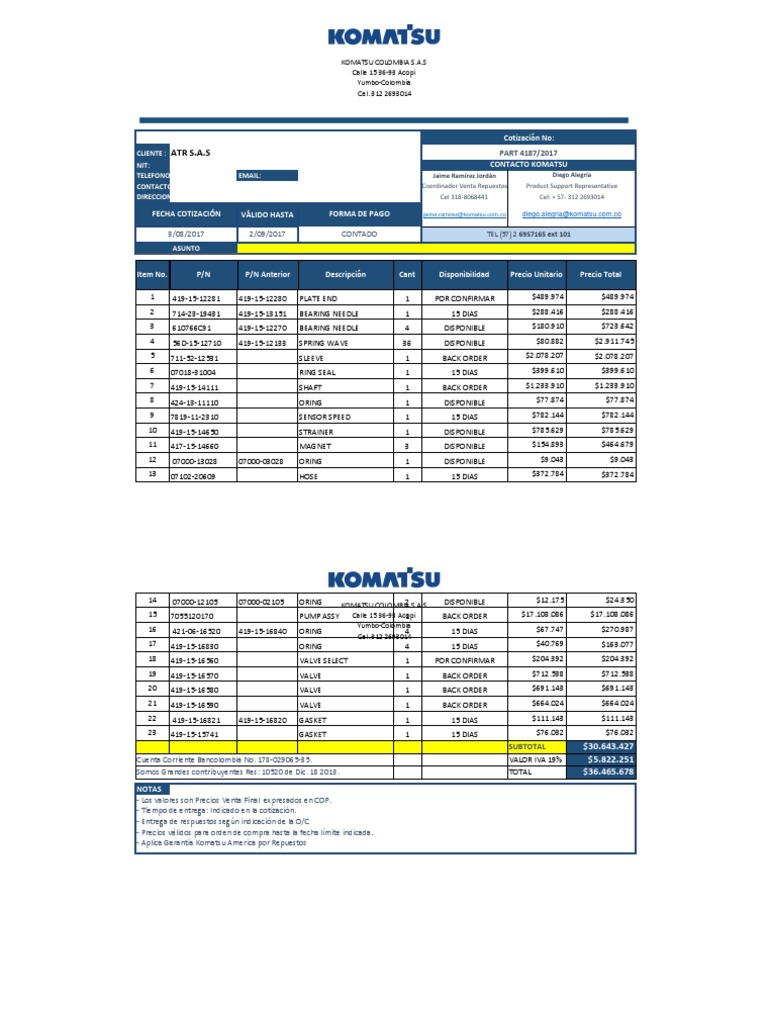3/08/2017 2/09/2017 CONTADO TEL (57) 2 6957165 ext 101