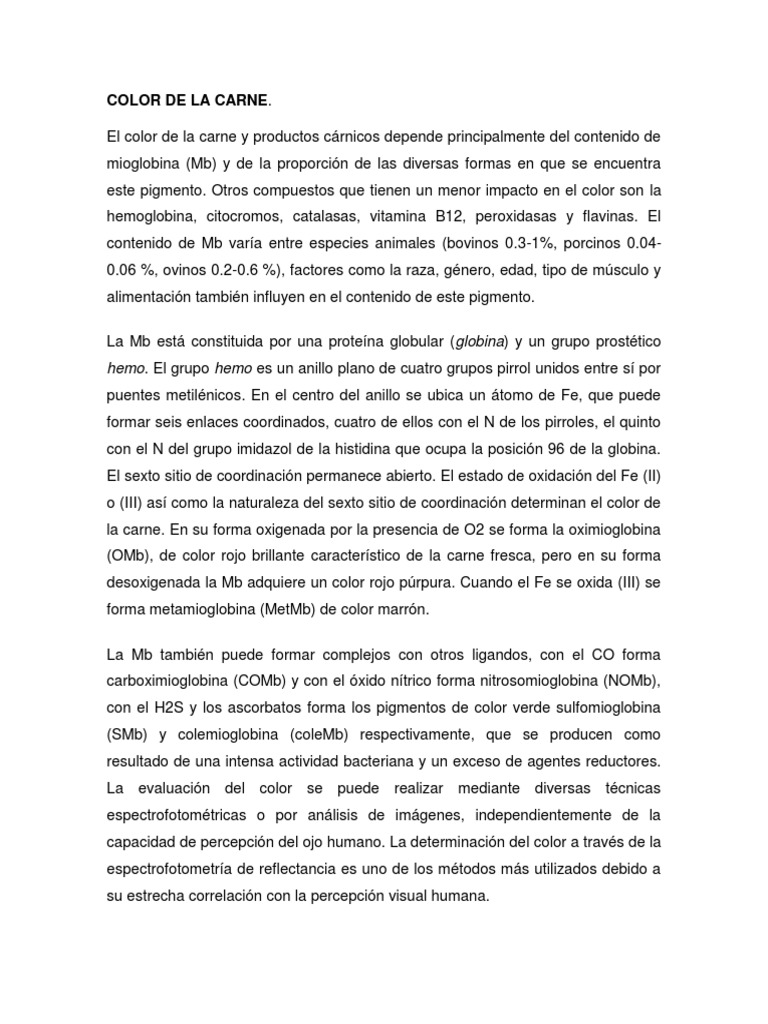 El color de la carne y productos crnicos depende principalmente del contenido de