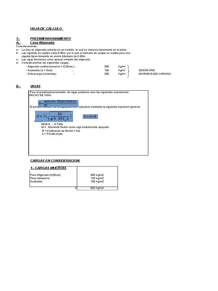 Predimensionamiento de Vigas y Columnas
