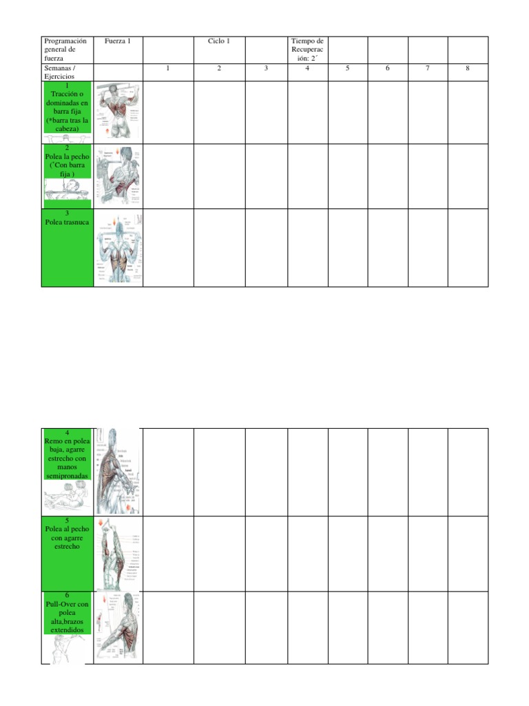TABLA DE ENTRENAMIENTO DE FUERZA