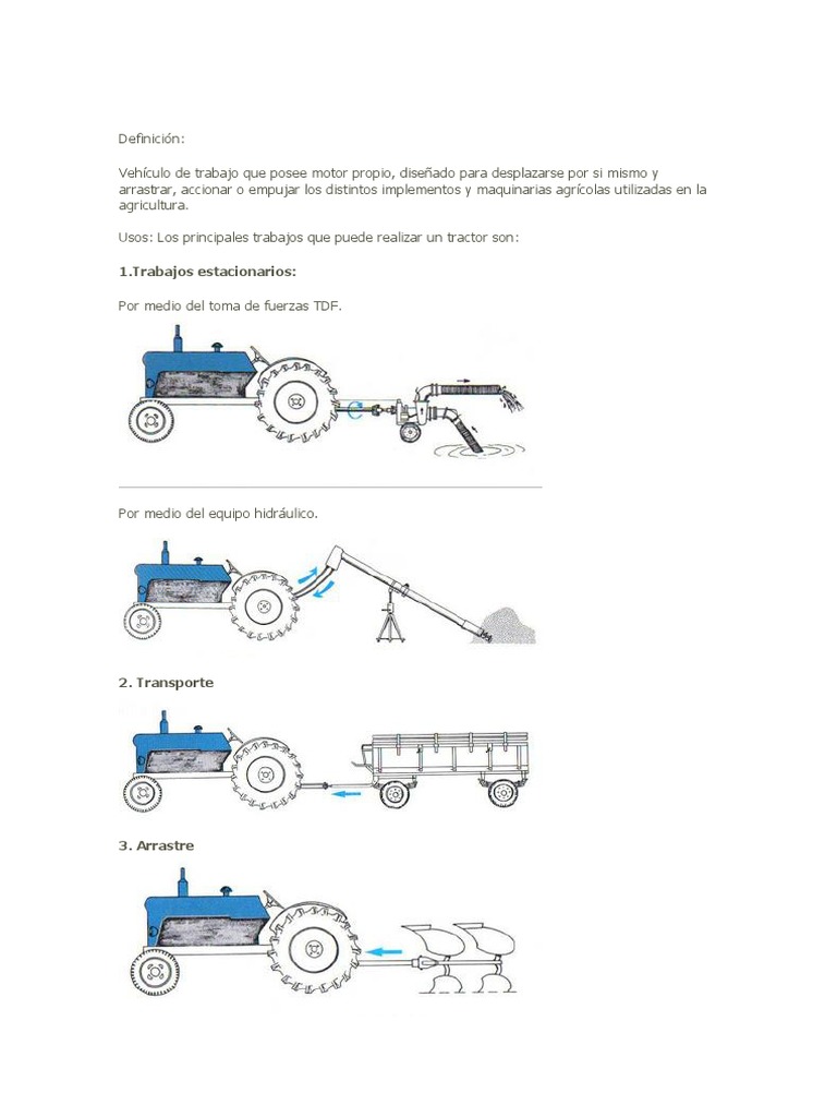 Usos: Los principales trabajos que puede realizar un tractor son: