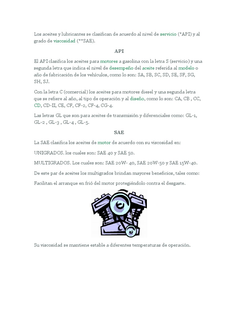 CLASIFICACION DE LOS ACEITES LUBRICANTES PARA MOTORES