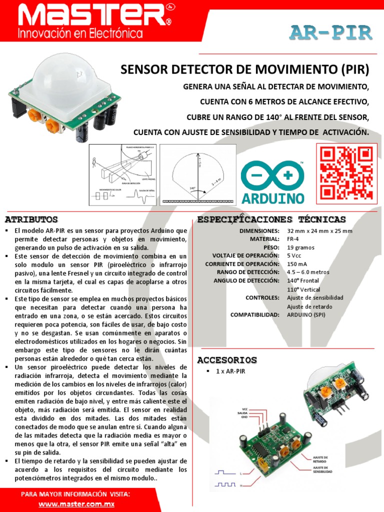 El modelo AR-PIR es un sensor para proyectos Arduino que DIMENSIONES: 32 mm x 24 mm x 25 mm