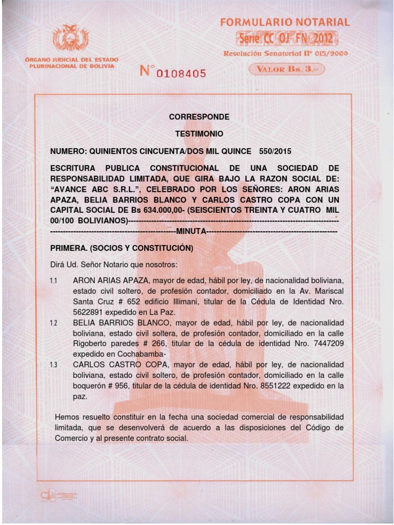 escritura de constitucin.