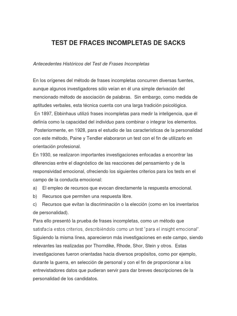 Antecedentes Histricos del Test de Frases Incompletas