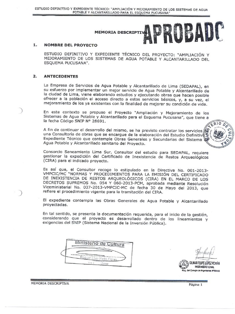 Sistemas de Agua Potable y Alcantarillado para el Esquema Pucusana”, que tiene 2