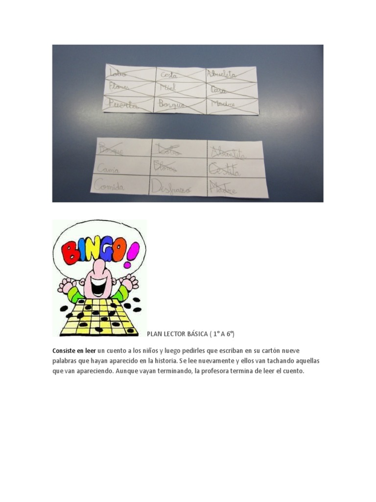 Consiste en leer un cuento a los nios y luego pedirles que escriban en su cartn nueve