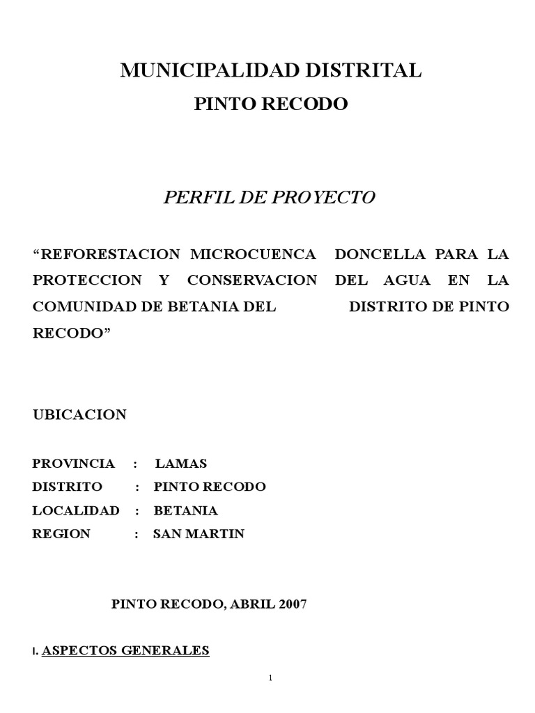 PROYECTO : Reforestacin Microcuenca Doncella para la Proteccin y
