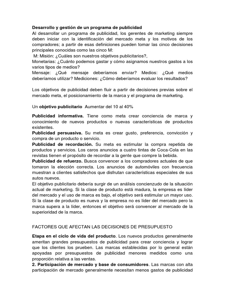 En conclusin los objetivos de publicidad deben fluir a partir de decisiones