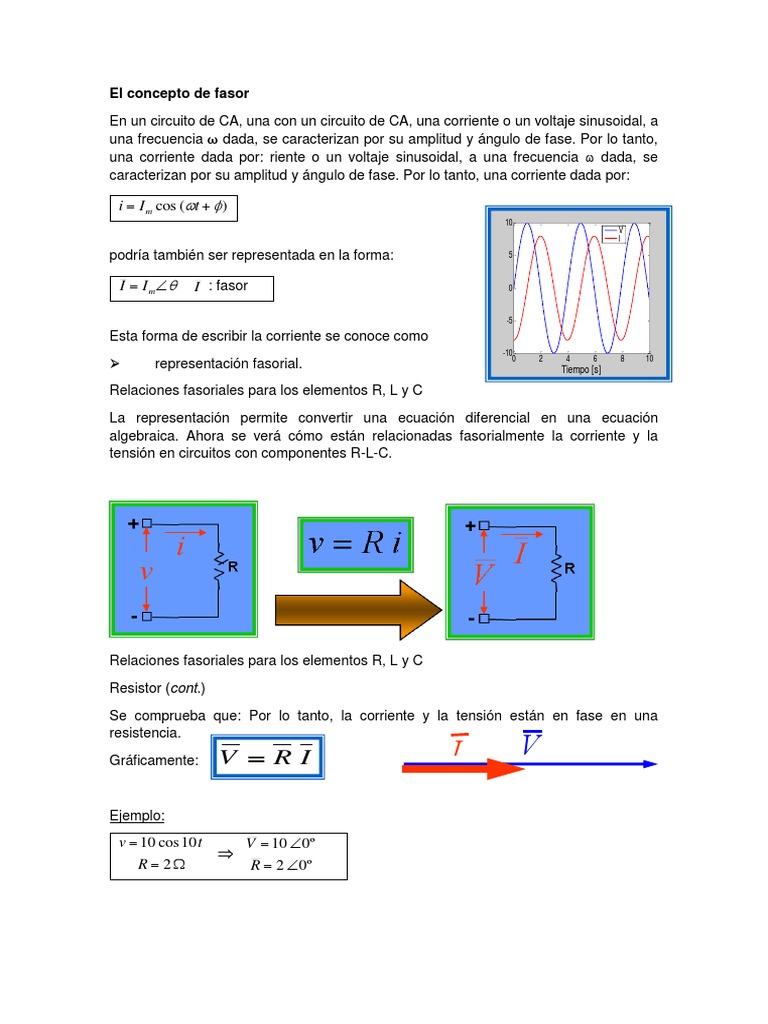 algebraica. Ahora se ver cmo estn relacionadas fasorialmente la corriente y la