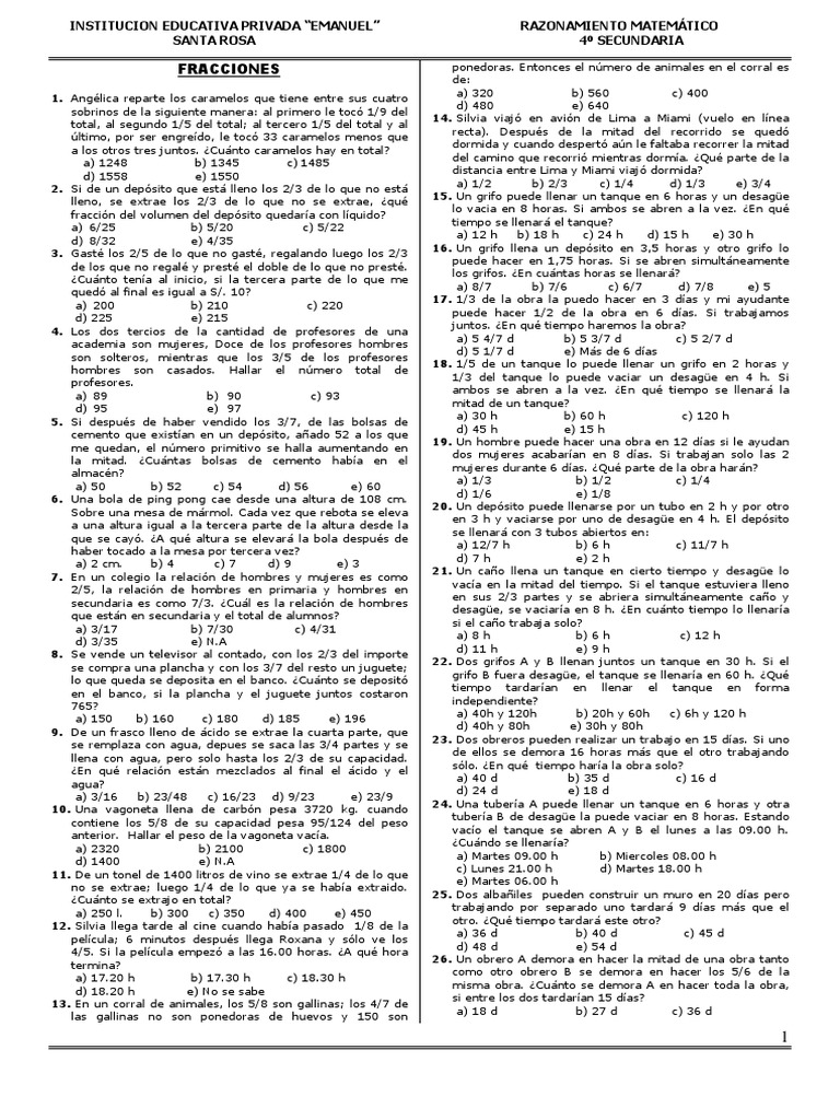 40. Hallar la cantidad de fracciones propias e irreducibles de d) 2 das e) 3 das, 22 horas
