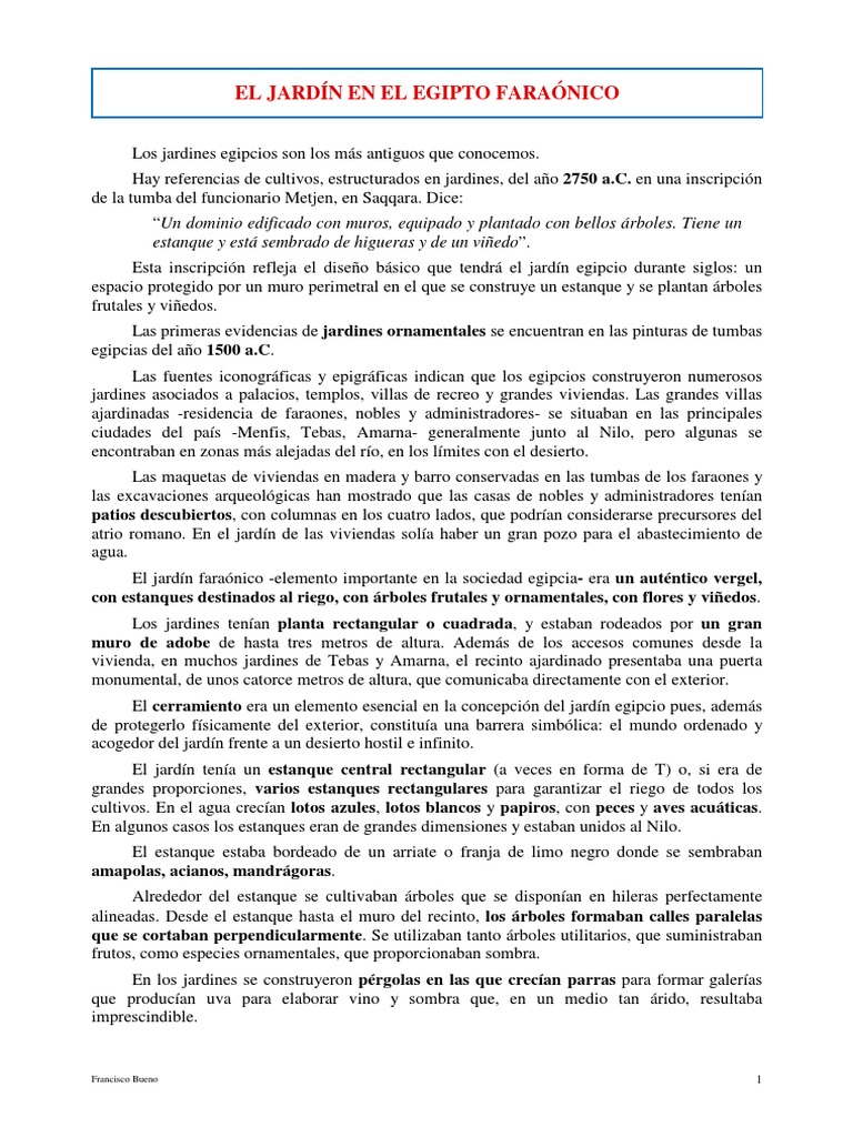 Gran parte de los conocimientos en jardinera de los antiguos egipcios se transmitirn a