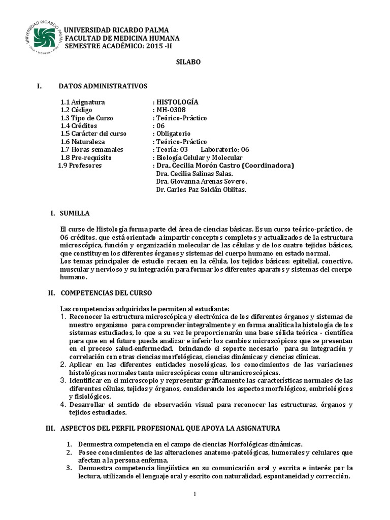 El curso de Histologa forma parte del rea de ciencias bsicas. Es un curso terico-prctico, de