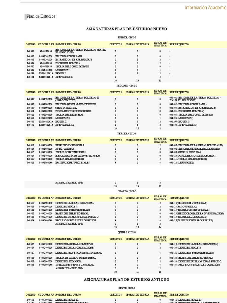 ASIGNATURAS PLAN DE ESTUDIOS ANTIGUO