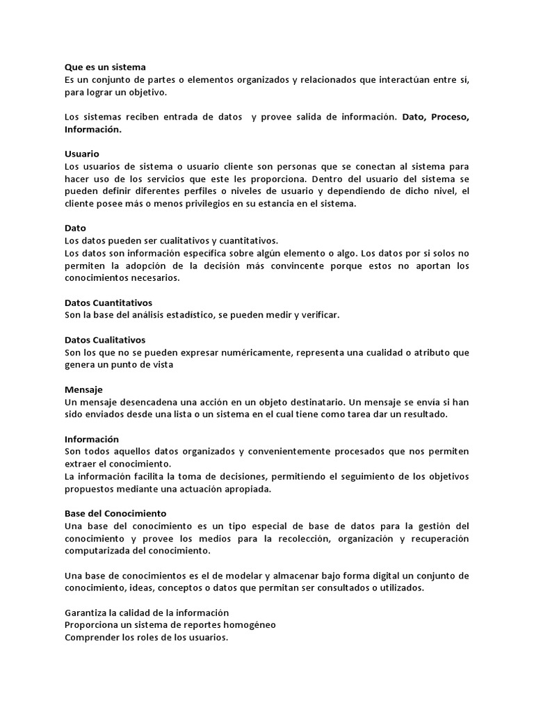 Los sistemas reciben entrada de datos y provee salida de informacin. Dato, Proceso,