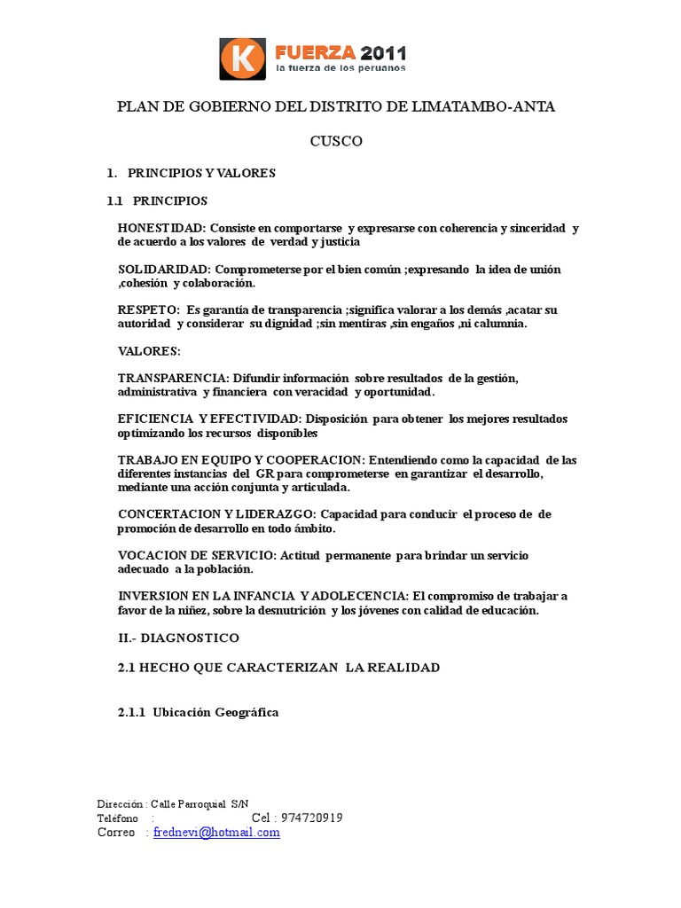 PLAN DE GOBIERNO DEL DISTRITO DE LIMATAMBO-ANTA