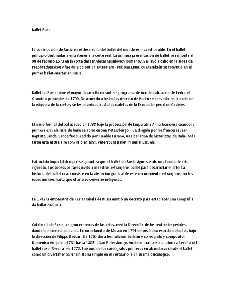 La contribucin de Rusia en el desarrollo del ballet del mundo es incuestionable. En el ballet