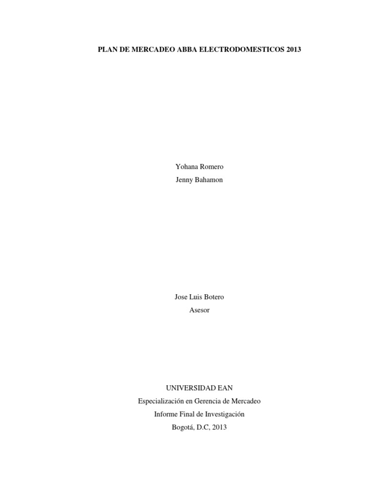 PLAN DE MERCADEO ABBA ELECTRODOMESTICOS 2013