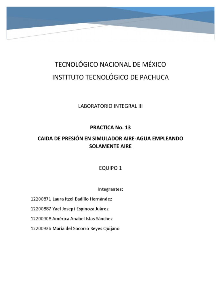Al final de esta prctica se determin que la cada de presin aumenta a medida que se