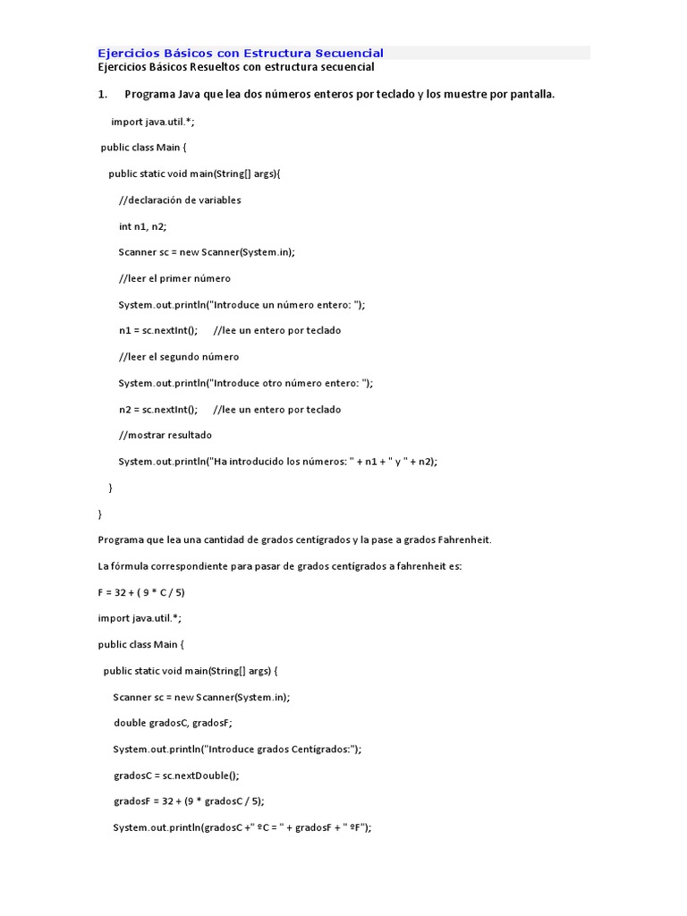 Ejercicios Bsicos Resueltos con estructura secuencial