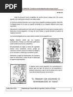 El documento habla sobre la importancia de corregir errores pequeños para evitar accidentes mayores. Señala que los errores pequeños a menudo se ignoran pero pueden conducir a catástrofes si no se corrigen. Explica algunas razones comunes por las que los trabajadores cometen errores pequeños como rapidez excesiva, desconocimiento de normas de seguridad y rehusar seguir instrucciones. Concluye enfatizando que la seguridad es responsabilidad de todos.