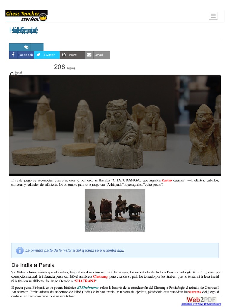 Sir William Jones afirm que el ajedrez, bajo el nombre snscrito de Chaturanga, fue exportado de India a Persia en el siglo VI a.C. y que, por