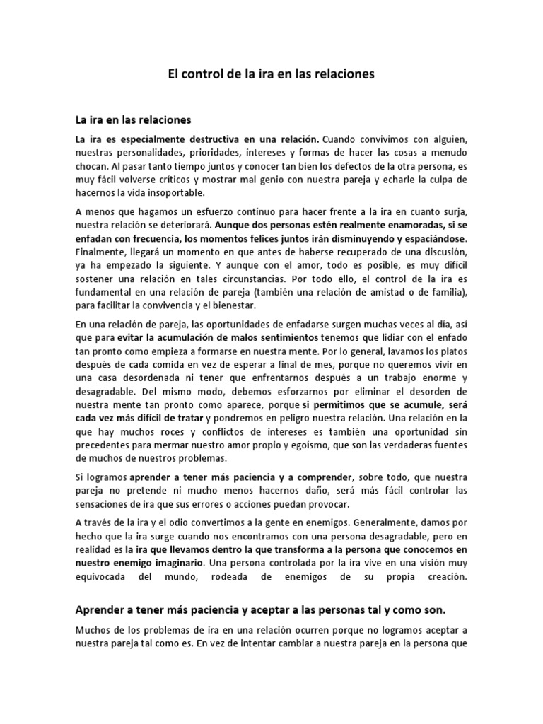sostener una relacin en tales circunstancias. Por todo ello, el control de la ira es