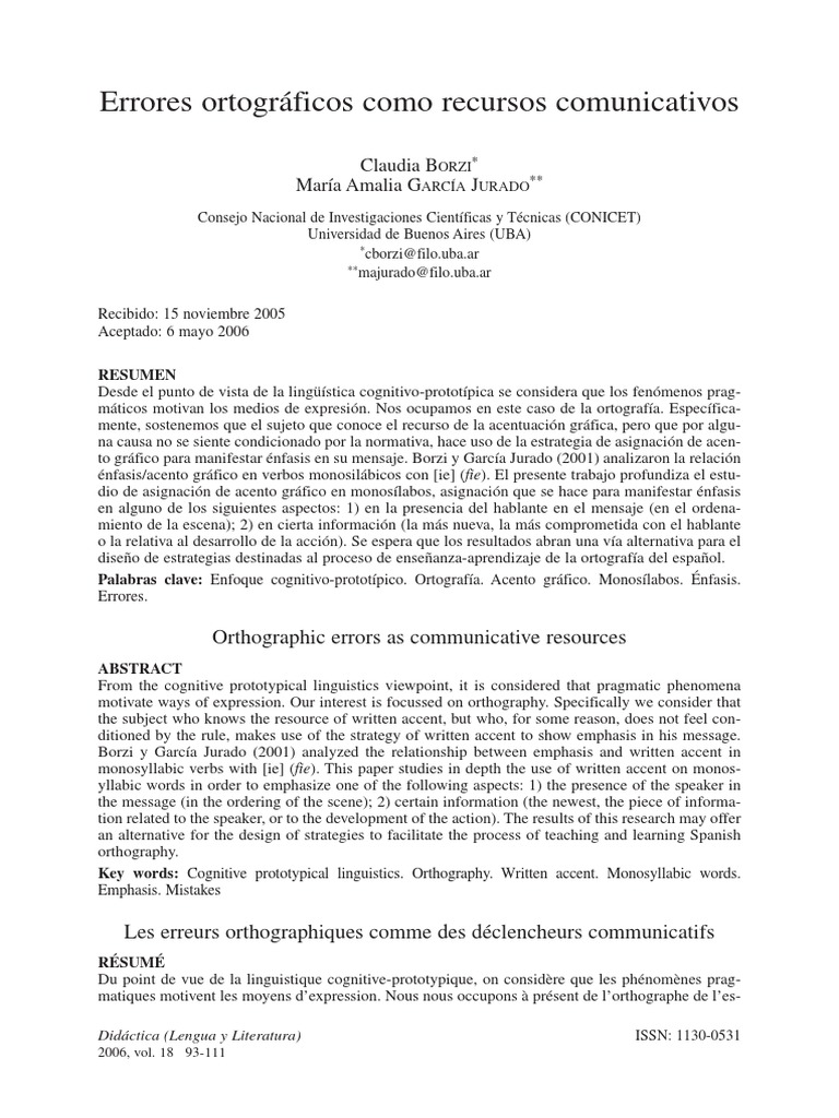 message. Borzi et Garca Jurado (2001) ont analys le rapport emphase/ accent graphique dans des