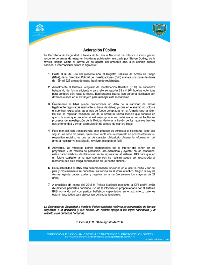 Aclaracion Publica Policia Honduras